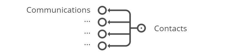 In this option, the data from the 1. table (e.g. Communications) is linked to only one element from the 2. table (e.g. Contacts), but a member of the 2. table (e.g. Contacts) may be linked to many elements of the 1. table (e.g. Communications).