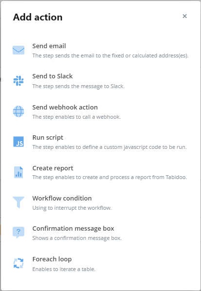 This step enables you to create and process a report from Tabidoo.